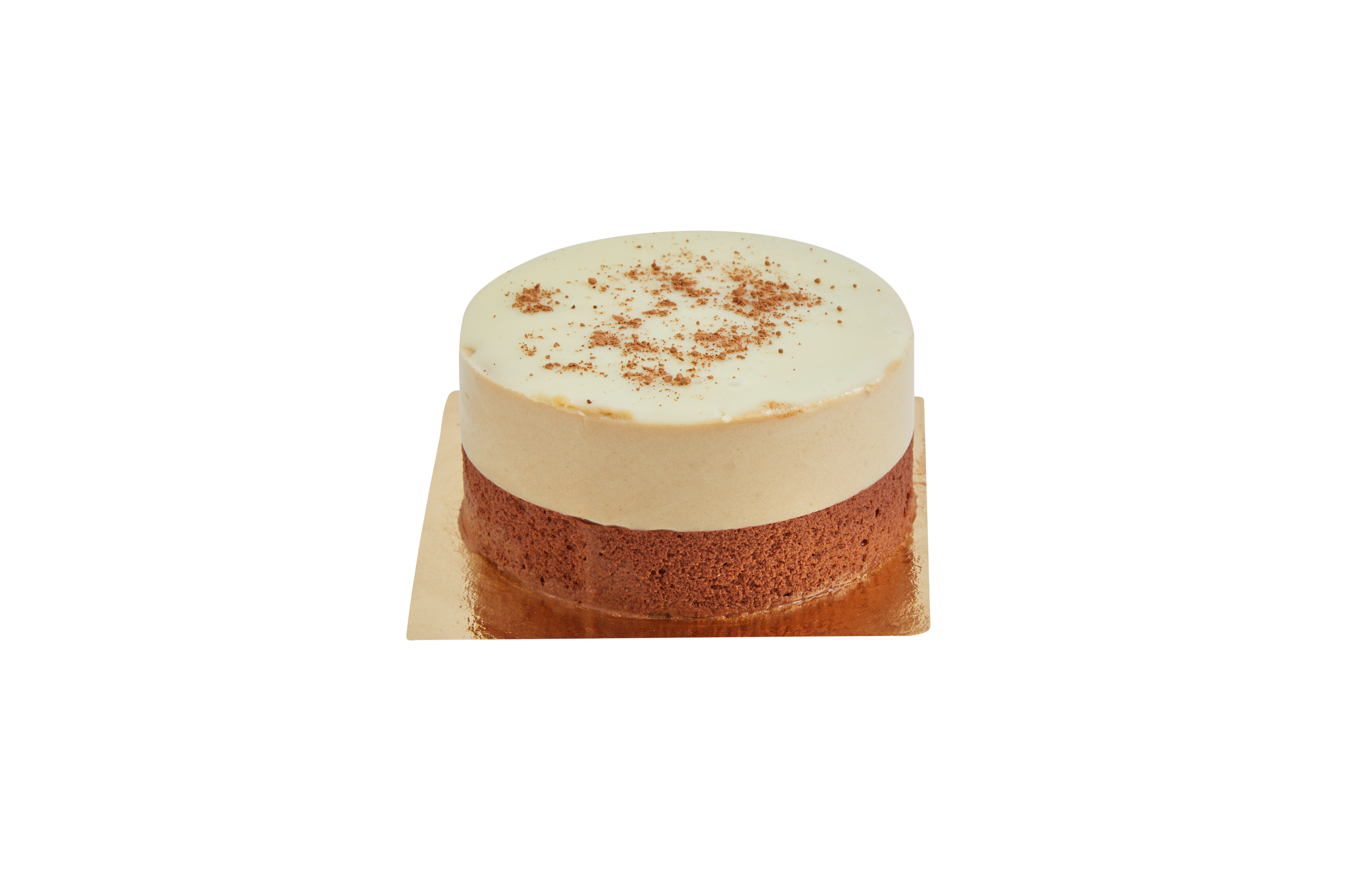 Mousse de chocolate semiamargo al 70% de cacao y mousse de sabayon. En la base tiene un bizcocho sacher.