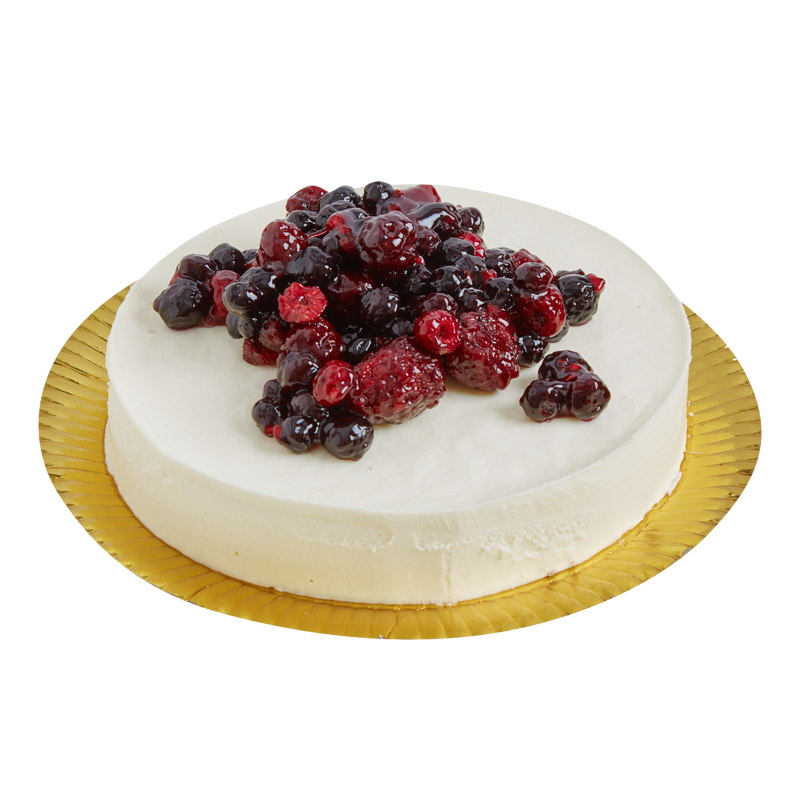 Bizcocho de oliva y almendras, paleta de frutos del bosque, suave mouse de queso mascarpone.